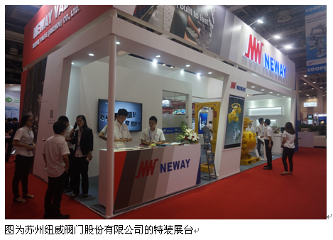 參展的國內(nèi)著名閥門品牌商主要有紐威閥門、保一集團、五洲閥門、維薩閥門、方正閥門、宣達實業(yè)集團等;國外著名品牌:有濱特爾、福斯、羅托克等;以及上海增欣科技、立信閥門、伯特利閥門、成都中寰流體、博納斯威閥門、上海開維喜閥門、四川凱茨閥門、華海密封、正海密封等企業(yè);江蘇閥門行業(yè)中主要參展的企業(yè)有:蘇州思達德閥門、蘇州道森閥門、蘇州德蘭能源科技、蘇州澎瀚機械、蘇州思達德機械自控、江蘇圣業(yè)閥門、南京肯特、江蘇三維閥門、江蘇科維儀表工程、蘇州富朗閥門、嘉士凱(蘇州)閥門配件等,這些參展企業(yè)都以特裝形式和各種新穎方式參展這次展會,在展會上展示了他們的新產(chǎn)品和企業(yè)形象。