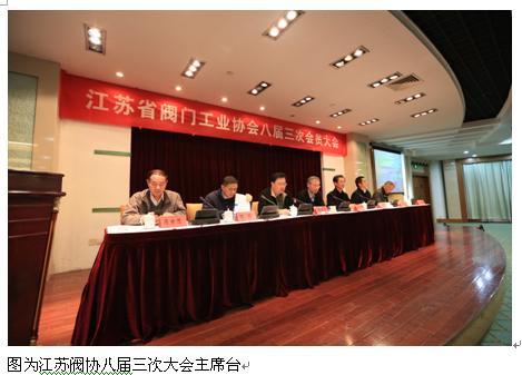 12月17日,江蘇省閥門工業(yè)協(xié)會八屆三次會員大會在蘇州相城區(qū)舉行,會議主題是適應(yīng)新常態(tài) 破解新難題 實現(xiàn)江蘇閥門產(chǎn)業(yè)發(fā)展新步伐,來自江蘇省經(jīng)信委、蘇州市經(jīng)信委、江蘇省機(jī)械行業(yè)協(xié)會的有關(guān)領(lǐng)導(dǎo)以及江蘇閥協(xié)100多家會員單位約180多名企業(yè)主要領(lǐng)導(dǎo)和代表參加了這次會議。