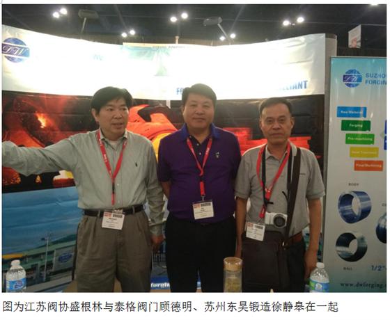 在展會(huì)參訪期間,江蘇閥協(xié)秘書(shū)處負(fù)責(zé)人先后拜訪了美國(guó)閥門制造商協(xié)會(huì)/ VMA和美國(guó)石油協(xié)會(huì)/ API,雙方進(jìn)行了坦誠(chéng)的交流,建立合作機(jī)制,為今后進(jìn)一步合作達(dá)成了意向。隨后又分別來(lái)到江蘇閥協(xié)會(huì)員企業(yè)蘇州紐威閥門股份有限公司、江蘇圣業(yè)閥門有限公司和蘇州東吳鍛造廠有限公司三家公司展位前,與這三家公司主要負(fù)責(zé)人程章文、孫洪泉、徐靜皋等分別進(jìn)行了交流。接著參觀了中國(guó)在展位上的五家閥門企業(yè)展位,與這幾家企業(yè)主要負(fù)責(zé)人進(jìn)行了交流,他們分別是上海增欣機(jī)電科技股份有限公司胡增洪董事長(zhǎng)、TVC美國(guó)泰格閥門有限公司顧德明董事長(zhǎng)、保一集團(tuán)有限公司張曉忠副總經(jīng)理、五洲閥門股份有限公司兩家閥門公司陳星翰副總經(jīng)理、方正閥門有限公司方高遠(yuǎn)副總經(jīng)理。又與蘇州思達(dá)德閥門有限公司、蘇州工業(yè)園區(qū)思達(dá)德機(jī)械自控有限公司似張偉等一行分別進(jìn)行了交流與合影;以及中國(guó)閥門企業(yè)展位上進(jìn)行溝通交流。這次中國(guó)閥門企業(yè)參展不多,但都是行業(yè)中外貿(mào)上骨干企業(yè),代表著中國(guó)閥門較高的技術(shù)水平,同國(guó)外閥門同一舞臺(tái)共展閥門高端技術(shù)風(fēng)采,一起分享科技成果.也了解國(guó)外閥門產(chǎn)品發(fā)展走向,認(rèn)識(shí)到了我國(guó)閥門與國(guó)外產(chǎn)品某些方面也有不足的.尤其在品質(zhì)上、外觀上等方面都有問(wèn)題的,在閥門工藝細(xì)節(jié)上、材質(zhì)上、管理上也有些缺陷,這也是我們值得改進(jìn)提高的,在國(guó)際市場(chǎng)上再展風(fēng)采。