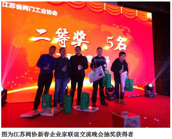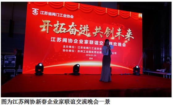 1月29日晚上,江蘇省閥門工業(yè)協(xié)會在蘇州舉行了“開拓奮進共創(chuàng)未來”為主題的新春企業(yè)家聯誼交流晚會,江蘇閥協(xié)理事長、中核蘇閥科技實業(yè)股份有限公司董事長彭新英和江蘇閥協(xié)常務副理事長、揚州電力設備修造廠有限公司總經理蔡軍等領導,以及來自江蘇閥協(xié)的100多家會員企業(yè)的企業(yè)家等企業(yè)高管等150多人參加了此次聯歡晚會。