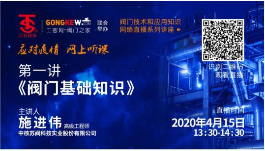 【直播預(yù)告】江蘇閥協(xié)與工客網(wǎng)聯(lián)辦閥門技術(shù)和應(yīng)用知識網(wǎng)絡(luò)直播系列講座第一講將于4月15日下午開播