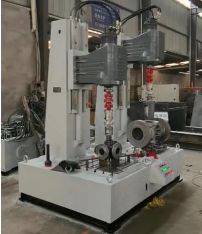 據(jù)了解:JLX型旋塞閥研磨機(jī)是針對(duì)硬密封旋塞閥密封面的研磨而精心研制的專用設(shè)備,該設(shè)備采用獨(dú)創(chuàng)的正轉(zhuǎn)360度和反轉(zhuǎn)360度,最主要的是正反轉(zhuǎn)一圈還有上下起跳5次功能方式,上下起跳功能就是解決了閥體密封面和閥芯塞密封面不會(huì)咬傷和損壞。獲得極高的加工精度、表面質(zhì)量以及批量加工的質(zhì)量一致性。JLX型旋塞閥研磨機(jī)分為一工位和兩工位研磨機(jī)、一工位研磨機(jī)和兩工位研磨機(jī)供用戶可根據(jù)要求選配。該設(shè)備通過液壓馬達(dá)來控制轉(zhuǎn)速旋轉(zhuǎn),用液壓流量來控制轉(zhuǎn)速快與慢,根據(jù)閥門口徑大小和材質(zhì)來調(diào)整轉(zhuǎn)速快慢,這樣才閥體和閥芯塞配合度為一致。用戶根據(jù)被研磨閥體的工藝要求,選擇合適的研磨劑,粗磨和精磨相結(jié)合,或閥體與閥芯塞浮動(dòng)對(duì)磨。研磨頭通過液壓油缸來上升下降來實(shí)現(xiàn)。齒輪箱與主軸采用萬向節(jié)與伸縮桿鏈接,旋塞閥閥體和閥芯塞的垂直通過萬向節(jié)來變動(dòng),閥體和閥芯塞用伸縮桿來控制密封面的輕重來實(shí)現(xiàn)。裝夾誤差或其它工藝誤差。研磨劑根據(jù)用戶來選擇。JLX型旋塞閥研磨機(jī)由立柱機(jī)架、導(dǎo)軌及升降機(jī)構(gòu)、齒輪箱旋轉(zhuǎn)機(jī)構(gòu)、裝夾機(jī)構(gòu)等組成,旋轉(zhuǎn)機(jī)構(gòu)的旋轉(zhuǎn)中心線相互垂直。立柱與齒輪箱底板的升降功能通過液壓油缸來實(shí)現(xiàn),通過按鈕可進(jìn)行上升或下降。