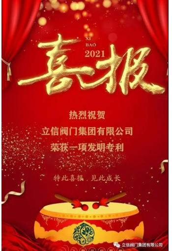 立信閥門(mén)集團(tuán)有限公司再次獲得一項(xiàng)國(guó)家發(fā)明專(zhuān)利