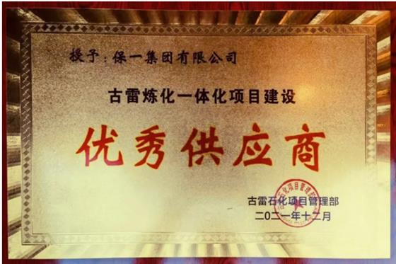 保一集團(tuán)榮獲“古雷煉化一體化項(xiàng)目建設(shè)優(yōu)秀供應(yīng)商”