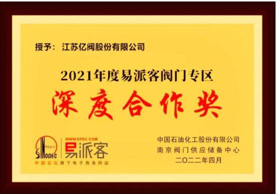 4月24日,中石化南京閥門供應儲備中心和易派客閥門專區(qū)在線上舉行了“易派客閥門專區(qū)推進會暨閥門供應商年度總結(jié)會”,會上表彰了50家企業(yè)為“易派客閥門專區(qū)深度合作獎”,15家企業(yè)為“2021年度優(yōu)秀閥門供應商”,5家企業(yè)為“2021年度優(yōu)秀執(zhí)行機構(gòu)供應商”。