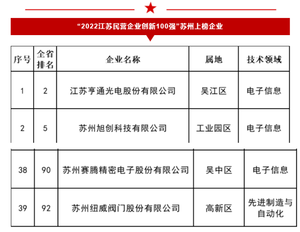 【會員榮譽】蘇州紐威閥門股份有限公司榮獲“2022江蘇民營企業(yè)創(chuàng)新100強”