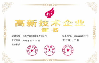 江蘇神通核能裝備有限公司通過高新技術(shù)企業(yè)認定