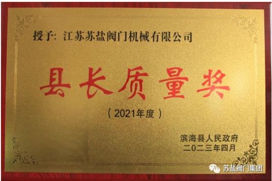 江蘇蘇鹽閥門機械有限公司榮獲“濱?h縣長質(zhì)量獎”