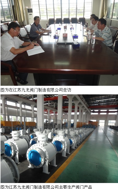 接著,來到建湖的江蘇九龍閥門制造有限公司,聽取了公司董事長潘明堯的對公司簡單介紹,并參觀了這家規(guī)模型閥門公司,公司主要生產(chǎn)高中壓閥門,球閥也是他們的主要產(chǎn)品,近幾年他們實施轉(zhuǎn)型升級,企業(yè)迅猛發(fā)展,目前廠區(qū)占地面積200畝,產(chǎn)品70%為球閥,球閥口徑最大可達48寸,主要為國外石油等領(lǐng)域大工程項目配套服務(wù),國外主要市場集中在中東地區(qū),今年該公司產(chǎn)值可達6億多元,成為我國閥門行業(yè)中一家頗有發(fā)展?jié)摿﹂y門制造商,也是排列鹽城地區(qū)閥門業(yè)中的“老二”。目前該公司總投資3億元,實施技改投入,一期生產(chǎn)廠房去年已投產(chǎn),正在建造研發(fā)中心、專家大樓、職工宿舍大樓。