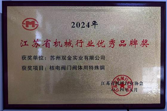 蘇州安特威、 鹽電、雙金、誠(chéng)功、南通電站等5家公司被授予“2024年江蘇省機(jī)械行業(yè)優(yōu)秀品牌獎(jiǎng)”稱號(hào)