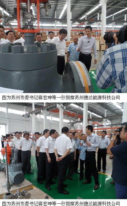 7月16日上午,蘇州市市委書記蔣宏坤和市長周乃翔一行二十余人親臨蘇州德蘭能源科技有限公司視察指導工作。在公司董事長楊宗賢,總經(jīng)理宗新、總工程師史道興的陪同下,蔣書記等領(lǐng)導先后參觀了公司的調(diào)節(jié)閥產(chǎn)品的生產(chǎn)車間、調(diào)節(jié)閥流體試驗裝置,進行了現(xiàn)場調(diào)研,并聽取了楊宗賢董事長對公司的總體情況,產(chǎn)品特點,專利特色及未來發(fā)展目標等內(nèi)容的簡要匯報。詳細了解公司的生產(chǎn)經(jīng)營和工藝技術(shù)后,蔣書記及隨行陪同的各級領(lǐng)導對該公司產(chǎn)品給予了高度評價,并勉勵管理團隊繼續(xù)一如既往地勤勉工作、開拓創(chuàng)新,不斷提升產(chǎn)品的科技含量。