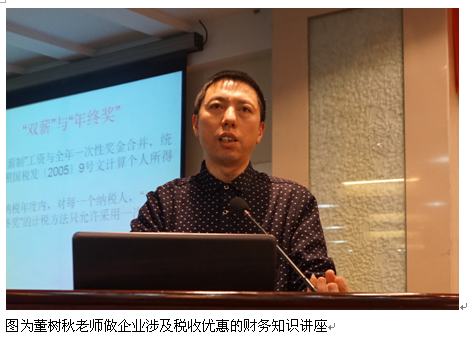 最后,蘇州會計事務(wù)所圖為董樹秋老師為參會領(lǐng)導(dǎo)做了企業(yè)涉及稅收優(yōu)惠的財務(wù)知識講座。
