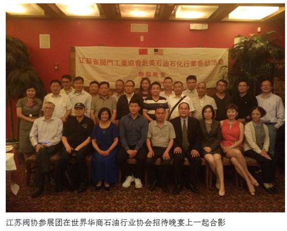 當(dāng)晚,江蘇閥協(xié)參訪團(tuán)還參加了世界華商石油行業(yè)協(xié)會(huì)招待晚宴,世界華商石油行業(yè)協(xié)會(huì)執(zhí)行會(huì)長(zhǎng)張磊,世界華商石油行業(yè)協(xié)會(huì)修宗明秘書(shū)長(zhǎng)、中國(guó)旅美專家協(xié)會(huì)商務(wù)經(jīng)濟(jì)與管理分會(huì)顧凡會(huì)長(zhǎng)、美國(guó)飛文國(guó)際文化傳媒集團(tuán)陳鐵梅董事長(zhǎng)、世界名人網(wǎng)王福生總編輯、以及來(lái)自中國(guó)的閥門行業(yè)的企業(yè)家在姚餐廳與休斯頓當(dāng)?shù)仄髽I(yè)家、專家及華文媒體代表進(jìn)行了交流。期間同中國(guó)在休斯頓的華商、企業(yè)家、專家,媒介、律師等,一起暢所欲言,敘述交流,建立友情,開(kāi)展合作等方面進(jìn)行了溝通與交流,并一起合影留念。