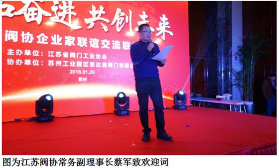 1月29日晚上,江蘇省閥門工業(yè)協(xié)會在蘇州舉行了“開拓奮進共創(chuàng)未來”為主題的新春企業(yè)家聯誼交流晚會,江蘇閥協(xié)理事長、中核蘇閥科技實業(yè)股份有限公司董事長彭新英和江蘇閥協(xié)常務副理事長、揚州電力設備修造廠有限公司總經理蔡軍等領導,以及來自江蘇閥協(xié)的100多家會員企業(yè)的企業(yè)家等企業(yè)高管等150多人參加了此次聯歡晚會。