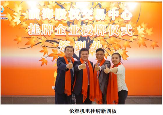 為了擴大資本市場,促進企業(yè)發(fā)展,2015年11月30日,無錫市倫渠機電制造有限公司(下稱“倫渠機電”)在前海股權(quán)交易中心正式掛牌,掛牌代碼為363474。此次掛牌意味著無錫市倫渠機電制造有限公司向資本市場邁進了重要的一步。