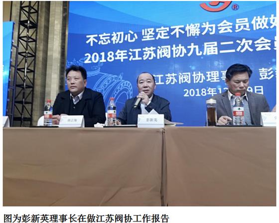 會議有江蘇閥協(xié)常務(wù)副理事長吳建新主持,首先江蘇閥協(xié)理事長彭新英做了標(biāo)題“不忘初心 堅定不懈為會員做好各項服務(wù)工作”--2018年江蘇閥協(xié)九屆二次會員大會工作報告(此報告另發(fā));江蘇閥協(xié)秘書長盛根林宣讀了江蘇閥協(xié)2018年度關(guān)于56家新會員單位申請加入?yún)f(xié)會組織和4家會員退會的報告(此報告另發(fā))。