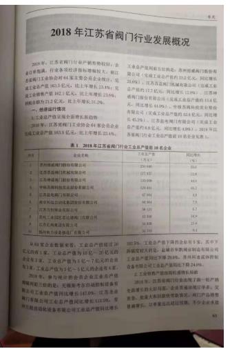 由機械工業(yè)出版社出版《中國通用機械工業(yè)年鑒》2019年版刊載江蘇閥協(xié)秘書長盛根林編寫的“2018年江蘇省閥門行業(yè)發(fā)展概況”長篇專稿!全文8000多字,已連續(xù)五年刊載各年份的江蘇省閥門行業(yè)發(fā)展概況稿。