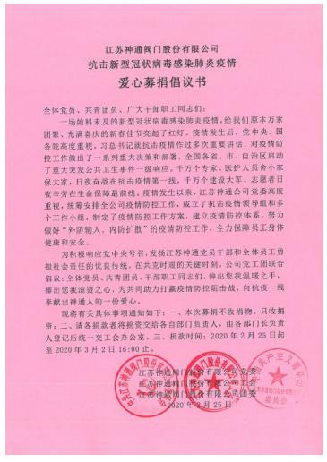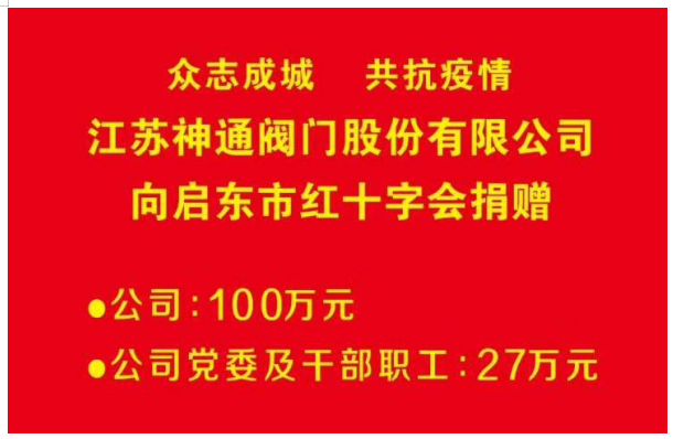 江蘇神通閥門(mén)捐款127萬(wàn)元助力打贏疫情防控阻擊戰(zhàn)