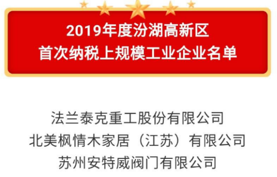 蘇州安特威閥門榮獲“首次納稅上規(guī)模工業(yè)企業(yè)”稱號暨“畝均稅收貢獻獎”