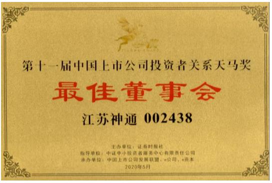 江蘇神通閥門股份有限公司董事會榮獲“最佳董事會獎”