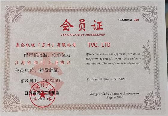 泰倫機(jī)械(蘇州)有限公司新加入江蘇省閥協(xié)組織