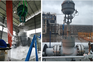 ★大口徑Global控制閥:近年,川儀調(diào)節(jié)閥先后承接了浙江石化4000萬(wàn)噸/年煉化一體化項(xiàng)目一期和二期項(xiàng)目,完成了從原油儲(chǔ)運(yùn)系統(tǒng)、航煤加氫、柴油加氫裂化、蠟油加氫、渣油加氫催化汽油加氫等 28個(gè)主裝置的成套閥門(mén)解決方案,特別是一期項(xiàng)目中使用于原油儲(chǔ)運(yùn)系統(tǒng)的數(shù)臺(tái)CL300 DN600Global控制閥,成功實(shí)現(xiàn)了國(guó)產(chǎn)化替代。在產(chǎn)品設(shè)計(jì)過(guò)程中,研發(fā)團(tuán)隊(duì)攻克了閥門(mén)結(jié)構(gòu)設(shè)計(jì)、閥內(nèi)件密封,材料匹配性選擇、高泄漏等級(jí)、海洋大氣環(huán)境防鹽霧、大口徑零部件精密制造等多項(xiàng)關(guān)鍵技術(shù),產(chǎn)品核心競(jìng)爭(zhēng)力不斷增強(qiáng)。同時(shí)公司生產(chǎn)的DN350~DN500系列規(guī)格Glboal控制閥在三寧化工、華能太原東山燃機(jī)熱電等公司批量應(yīng)用,成功實(shí)現(xiàn)國(guó)產(chǎn)化替代同類(lèi)產(chǎn)品。