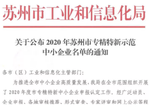 【企業(yè)動(dòng)態(tài)】蘇州安特威被認(rèn)定為2020年蘇州市專精特新示范中小企業(yè)