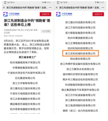 浙江優(yōu)機機械科技有限公司上榜浙江先進制造業(yè)“領(lǐng)跑者”名單