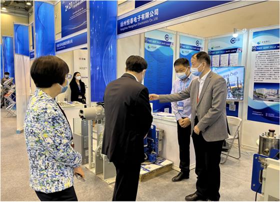 中國石化集團副總裁李永林、中國石化物資裝備部副總經(jīng)理王玲等領導到揚州恒春電子有限公司展位參觀指導