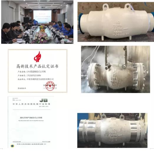 2013年中石化針對此類閥門進行了國產(chǎn)化立項攻關(guān),并聯(lián)合天然氣分公司、SEI和廣州院,中核科技進行了LNG軸流式止回閥8”1500lb樣機的國產(chǎn)化研制,攻關(guān)技術(shù)難點,并對閥門的特殊結(jié)構(gòu)、材料選擇、密封可靠性、工藝保證、設(shè)計計算、質(zhì)量控制、試驗驗證等進行了大量的工作。為確?,F(xiàn)場應(yīng)用的可靠安全性,樣機不僅完成低溫高壓氦氣密封試驗,還進行了2000次(低溫每動作100次進行一次低溫和常溫高壓氦氣檢測,20個循環(huán))的冷熱交變疲勞壽命試驗,歷經(jīng)2年多的自主創(chuàng)新研發(fā),2015年12月國內(nèi)首家樣機通過中石化驗收,并榮獲江蘇省高新技術(shù)產(chǎn)品認定。在“產(chǎn)、學(xué)、研、用”的基礎(chǔ)上逐步進行了工程化應(yīng)用,2019年10月成功將6臺10”-1500lb的LNG軸流式止回閥應(yīng)用到天津LNG現(xiàn)場,目前已安全在線運行兩年多,使用性能達到國際先進水平,替代進口產(chǎn)品。根據(jù)LNG項目低溫軸流式止回閥國產(chǎn)化研制經(jīng)驗,中核科技承擔(dān)了“JB/T13460-2018 液化天然氣用軸流式止回閥”行業(yè)標準(第一起草單位),2018年4月30日正式發(fā)布,12月1日實施。