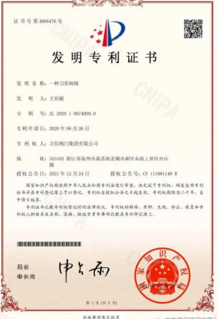 立信閥門(mén)集團(tuán)有限公司再次獲得一項(xiàng)國(guó)家發(fā)明專(zhuān)利