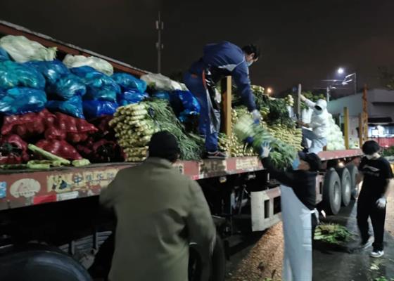 萵筍、蘿卜、圓蔥、大白菜、黃瓜……這些新鮮可口的蔬菜當(dāng)天下午從產(chǎn)地直購,再由愛心企業(yè)員工加班加點分揀打包,將這輛特長半掛大貨車裝得滿滿當(dāng)當(dāng)。經(jīng)過6個小時長途奔襲到達寶山,將用來支援社區(qū)居民的生活所需。