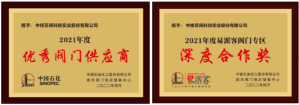 中核科技榮獲中石化優(yōu)秀閥門供應(yīng)商