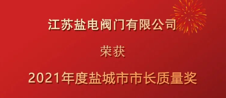 江蘇鹽電閥門榮獲2021年度鹽城市市長(zhǎng)質(zhì)量獎(jiǎng)