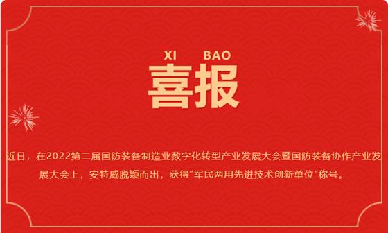 安特威榮獲“軍民兩用先進技術(shù)創(chuàng)新單位”稱號