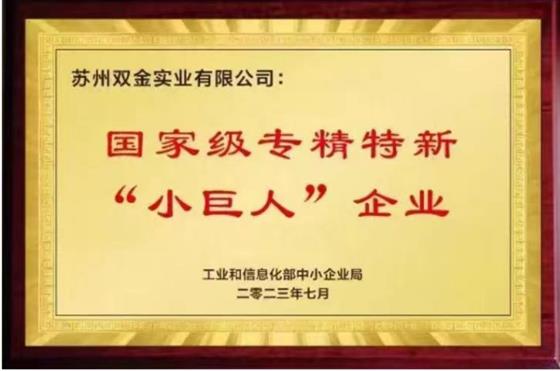 蘇州雙金實業(yè)有限公司列為國家級專精特新“小巨人”榮譽后又新獲兩項殊榮!