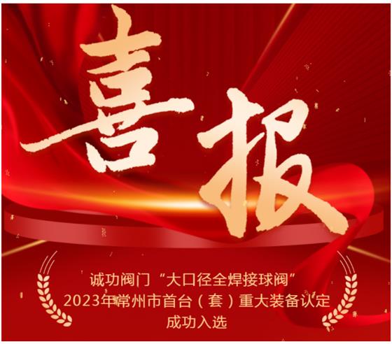 024年1月11日,常州市工業(yè)和信息化局公示了2023年常州市首臺(套)重大裝備認定名單,誠功閥門的大口徑全焊接球閥成功入選。