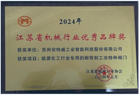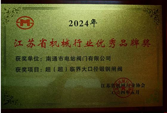 蘇州安特威、 鹽電、雙金、誠(chéng)功、南通電站等5家公司被授予“2024年江蘇省機(jī)械行業(yè)優(yōu)秀品牌獎(jiǎng)”稱號(hào)