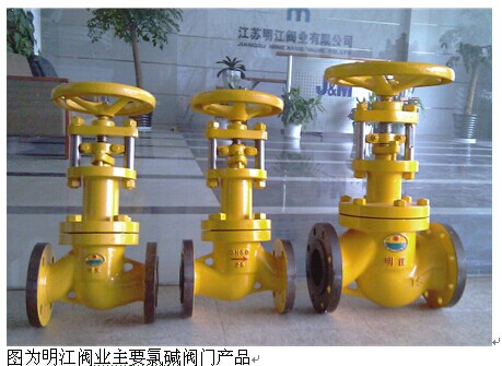 公司生產(chǎn)的“明江牌” 氯堿專用閥系列產(chǎn)品處于國內(nèi)領(lǐng)先水平,被300多家大中型氯堿化工企業(yè)長期使用,并出口到印尼、馬來西亞、蘇丹、敘利亞等國家和地區(qū)。目前,“明江牌”是化工行業(yè)耐腐蝕閥門的知名品牌,在化工企業(yè)的產(chǎn)品使用覆蓋率達(dá)90%以上。