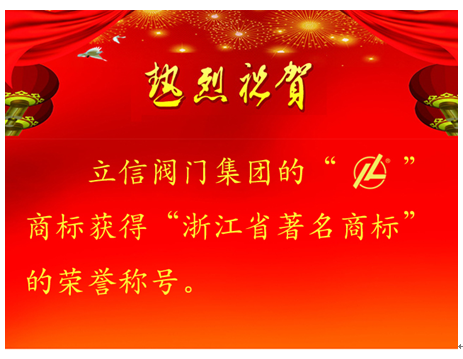 立信閥門集團(tuán)公司商標(biāo)被評定為“浙江省著名商標(biāo)”
